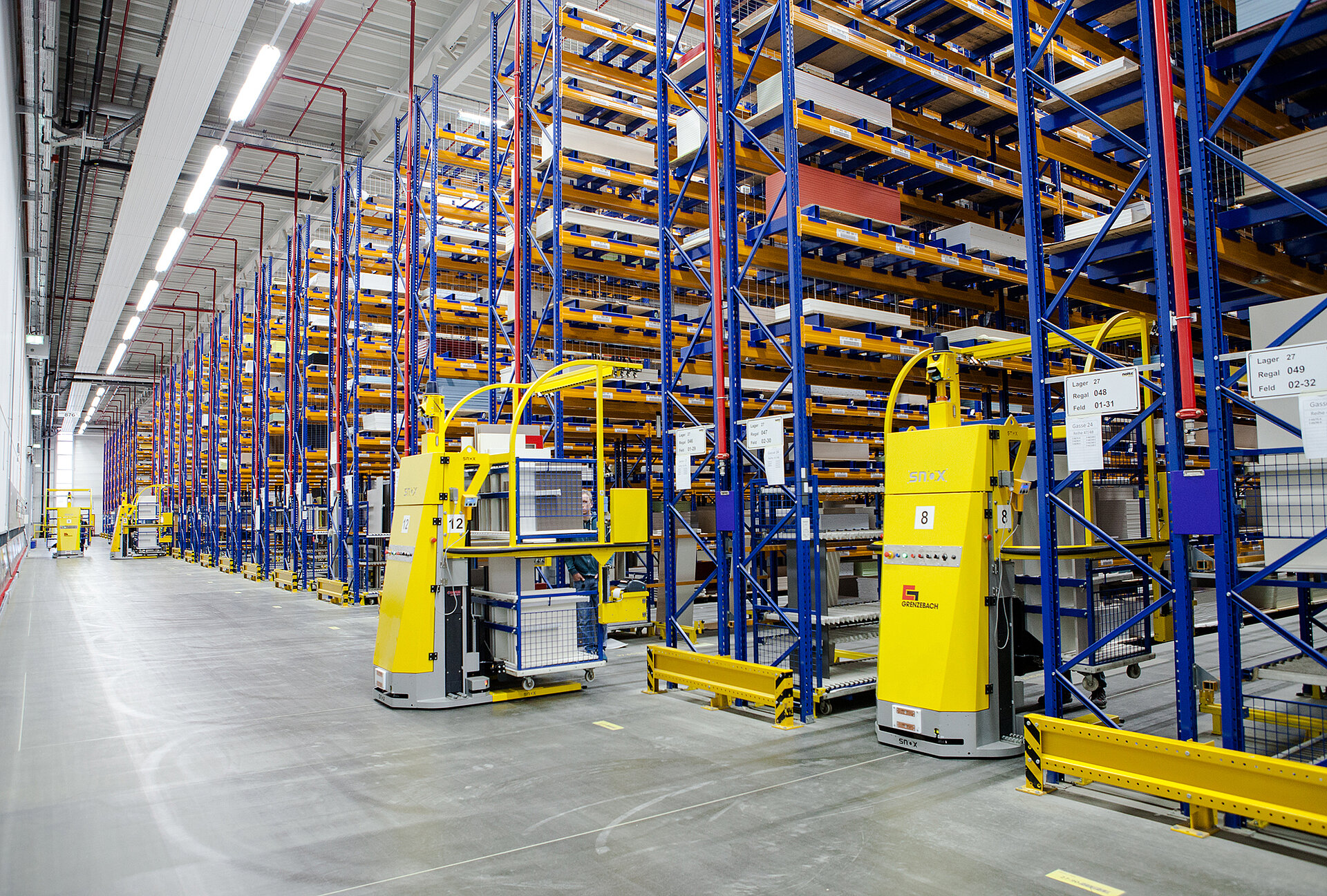 Vom Bearbeiten der Hölzer zum intelligenten Transport von Möbelteilen: Grenzebach hat für die Firma Nolte deren neues Kommissionierlager für Küchenfronten mit Automated Guided Vehicles (AGV, Fahrerlose Transportsyteme) als standardisierte Transportlösung ausgerüstet. Effekte durch den Einsatz der zwölf AGV: geringere Fehlerquote, verbesserte Ergonomie sowie deutlich höhere Produktivität beim Kommissionieren. Welche Front muss wann wo genau sein? Die Antworten finden der Nolte-Materialflussrechner und der Flottenmanager von Grenzebach gemeinsam digital. Industrie 4.0 ganz praktisch bei Nolte, einer der stärksten Küchenmarken Deutschlands.