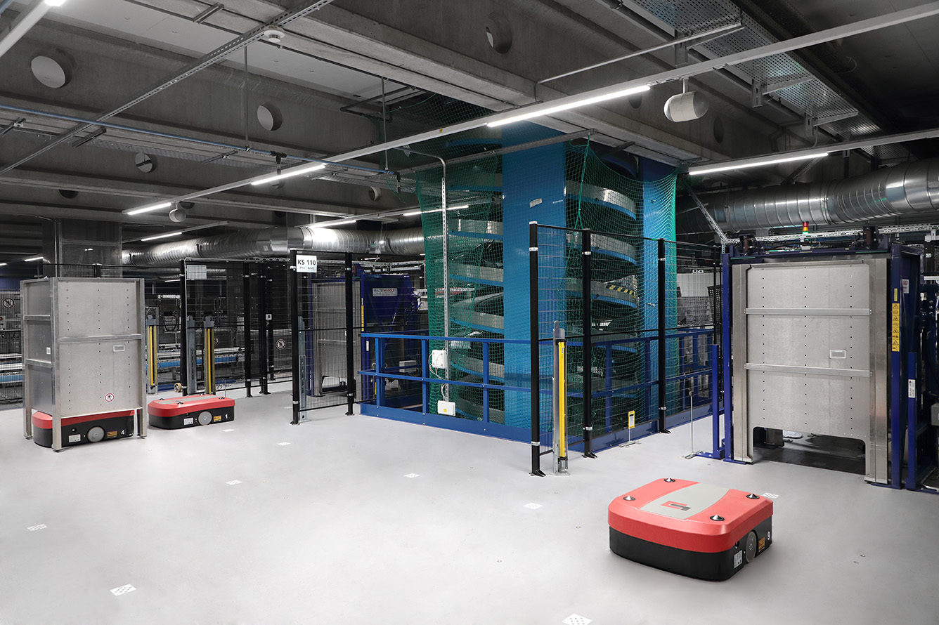 All international letter post items containing goods are customs-cleared at the international letter center in Zurich-Mülligen. The automated guided vehicles (AGV) from Grenzebach work reliably as part of the intralogistics solution developed for the listed building by the general contractor Gilgen Logistics – so that the family mail or business letters reach their recipients as fast as possible.
