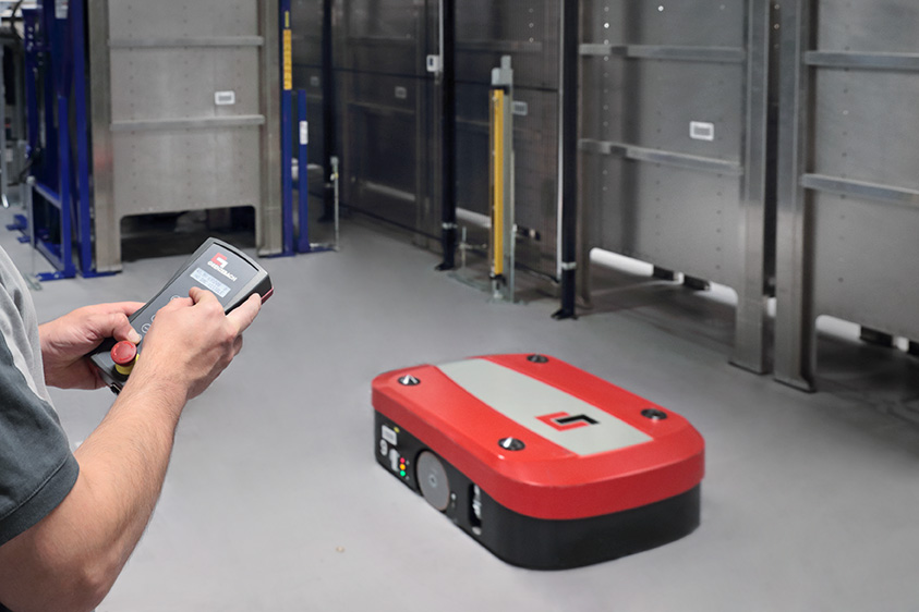 *The automated guided vehicles (AGV) from Grenzebach adhere to the relevant items of DIN EN 1175 (VDE0117). As per 4.3.5.1 regarding point “b) …”, all circuits, which are connected to the 48V battery voltage and are electrically connected to the power source, have no connection to the drive frame. All control components supplied with ≤ 24V of voltage are galvanically isolated from the battery voltage (power source).