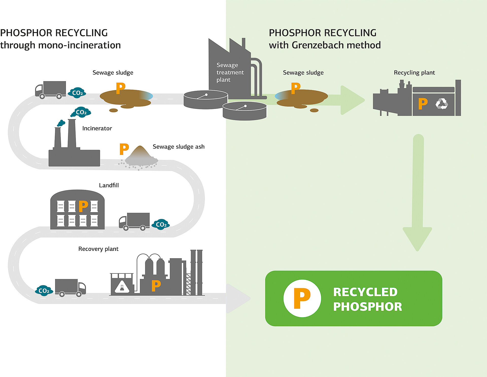 Currently, two different approaches have been established: Direct recovery from sewage sludge or indirect recovery from sewage sludge ash after mono-incineration. Both ways lead to the same result, but have different potentials in terms of efficiency and sustainability: